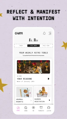 Don zurfafa fahimtar kai da haɗuwa da sararin samaniya, CHANI yana ba da damar samun kayan amfani na musamman. Wannan yana buɗe maka cikakken jerin abubuwa masu zurfi, kamar Karatuttukan Taswirar Haihuwa da ke ba da cikakken bayani game da kowane tauraro da alaƙarsu a cikin taswirar ka. Tare da "Weekly Magic & Manifestation," za ka samu karatu na mako-mako, al'adu, da kayan sauti don taimaka maka ka yi amfani da kowane lokaci na taurari, ciki har da shirin sauti na musamman, tunani mai jagora, da shawarwari don rubutu da bagade. Abubuwan Haɗuwa (Transits) suna ba da haske mai zurfin keɓantawa a kowace rana game da yadda taurari ke hulɗa da taswirar haihuwar ka, yana ba ka cikakken lokaci da tasiri. Tsarin "Your Year Ahead" yana ba ka Hasashe na Taurari na shekara-shekara, karatuttukan kwata-kwata, da kuma zurfafa kan manyan jigogi na shekara don shirya ka kowane wata. Bugu da ƙari, akwai ɗakin karatu na Tabbatarwa da Tunanin Jagora don tallafa maka a kowane yanayi.