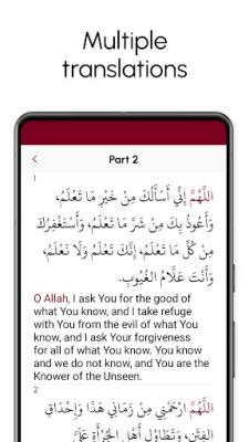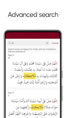 Don faɗaɗa fahimtar rubutun, Dalailal Khayrat yana ba da fassarori daban-daban ciki har da Turanci, Bahasa, Farisa, Faransanci, Turkanci, da Urdu, yana bawa masu amfani damar nutsewa cikin ma'anonin cikin harshensu na zaɓi. Har ila yau, ga waɗanda ba su saba da haruffan Larabci ba, akwai zaɓin karanta rubutun Larabci na asali ta amfani da haruffan Latin, wanda ke sauƙaƙa karantawa da furtawa. Tsarin bincike mai zurfi yana ba ku damar gano kowane aya ko sashe cikin Larabci ko fassarorinsa cikin sauri da inganci, yayin da fasalin ajiye ayoyi (bookmarking) ke taimaka muku kiyaye wuraren da kuka fi so don komawa gare su daga baya.