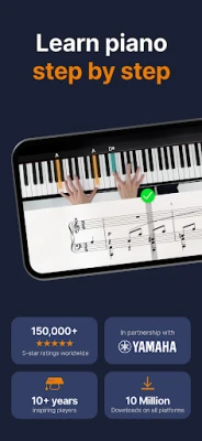 flowkey yana sauƙaƙe tafiyarka ta koyon piano ta hanyar fasalulluka na koyarwa masu mu'amala, yana ba ka damar koyo cikin sauƙi da nishaɗi. Za ka iya zaɓar sassan waƙa guda ɗaya don maimaita su har sai ka kware, ko kuma ka yi aiki da hannun dama ko hagu daban-daban. Yanayin "Wait Mode" yana sa flowkey ya jira ka ka buga madaidaitan bayanan kiɗa kafin ya ci gaba, yana ba ka damar samun cikakkiyar amsa kai tsaye. Kalli bidiyon kwararru suna kaɗa waƙar, inda za a nuna maka bayanan kiɗa na gaba a kan madannai da kuma yadda za ka sanya yatsu. Ko kuma ka zaɓi "Just Play" don kawai ka ji daɗin kaɗawa yayin da flowkey ke bi da makin ka ko da ka ɓace wasu bayanan kiɗan. Wannan manhaja tana aiki da kowane nau'in piano – na gargajiya, na dijital, ko madannai – tana buƙatar na'urarka kawai (waya, kwamfutar hannu, ko kwamfutar tafi-da-gidanka) da kuma kayan kiɗan naka.