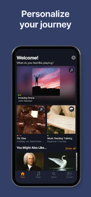 Shin kana fatan buga piano da kwarewa, ko ka daɗe kana son koyon yadda ake kaɗawa? flowkey ce mabuɗinka don buɗe duniyar kiɗan piano mai ban mamaki. Wannan manhaja mai ban sha'awa tana ɗauke da dubban waƙoƙin piano da aka tsara da kyau, waɗanda suka fito daga salo daban-daban kamar su na gargajiya (Classical), na zamani (Pop), na Fina-finai da Talabijin, da ma fiye da haka. Ko kai sabon mai farawa ne ko kuma mai fasaha da ke son inganta ƙwarewarsa, flowkey yana da matakan koyo huɗu daban-daban don tabbatar da cewa za ka sami sababbin waƙoƙin da za ka koyi ko kaɗa kowane lokaci. Daga tushe har zuwa salo masu rikitarwa, duk abin yana hannunka.