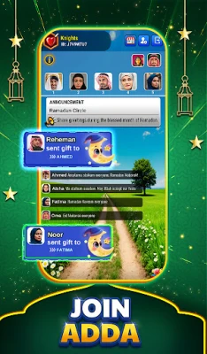 Tare da Ludo King®, ana samun damar yin wasa da mutane daban-daban daga ko'ina a duniya. Ku shiga cikin wasannin Ludo na kan layi tare da 'yan wasa 2, 3, 4, 5, ko 6, ko ku ji daɗin wasa da abokan ku da iyalan ku a yanayin wasan cikin gida. Haka kuma, akwai yanayin wasan macizai da tsani, wanda ke ƙara sabon salo ga nishaɗin ku. Ku kafa ko ku shiga ƙungiyar 'Adda' don yin hira da abokai da sabbin abokan wasa ta hanyar rubutu ko murya. Yi gasa a kowane wata a sabbin yanayi na Ludo kuma ku kammala buri na yau da kullun don samun ladabai masu mahimmanci kamar katin wasa, tsabar kudi, da lu'u-lu'u.