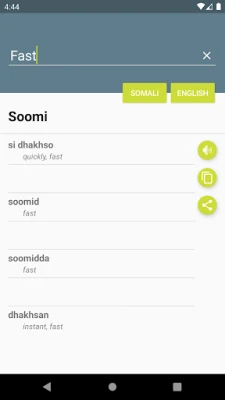 Ba kwa buƙatar shiga cikin dogayen matakai masu rikitarwa. Kawai rubuta kalmar da kake son fassara a cikin akwatin bincike, kuma nan take za ka ga ma'anar ta. Wannan yana ba ka damar sadarwa ba tare da shinge ba, da kuma zurfafa iliminka game da yarukan Somaliya da Ingilishi. Sami jagoranci mai inganci a duniyar harshe da **Qaamuuska Af-Soomaaliga iyo Ingiriisiga**.