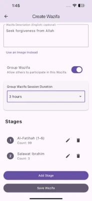 Cikin "Tasbih Wazifa", ibada tana samun sabuwar ma'ana ta haɗin kai. Kuna iya ƙirƙirar rukunin "wazifa" cikin sauƙi kuma ku gayyaci wasu su shiga don yin "tasbihi" tare da ku, ta hanyar raba hanyar haɗin gayyata. Ba wai kawai haka ba, kuna da ikon raba "wazifofin" ku na kanku ga abokai da iyali. Don ƙarin keɓancewa, manhajar tana ba ku damar ɗaukar hoto daga kowane littafi mai ɗauke da "wazifa" da kuke so ku haɗa shi kai tsaye. Hakanan, ana iya samar da naku "wazifofin" gabaɗaya ko zaɓa daga tarin da ake da su, tare da ikon gyarawa ko share kowane lokaci. Tabbatar da tsaro da ajiyar "wazifofin" ku yana da sauƙi ta hanyar ajiyar kan layi.